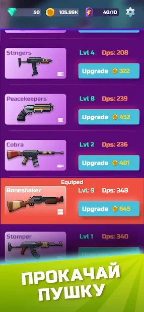 Ребята там есть взлом на монеты например у вас первый пистолет улучшайте уровни и вам дадут монеты бесплатно