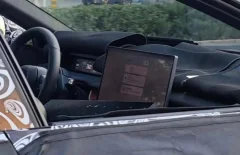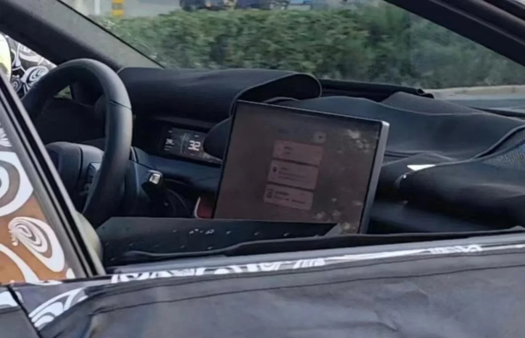 На фото видны некоторые элементы интерьера салона. Так, руль традиционной круглой формы имеет большое количество клавиш, а цифровая приборная панель находится рядом с водителем. Сбоку от водительского места находится большой сенсорный дисплей с горизонтальной ориентацией, который отвечает за управление различными функциями авто. Он же отображает навигацию и прочую информацию.