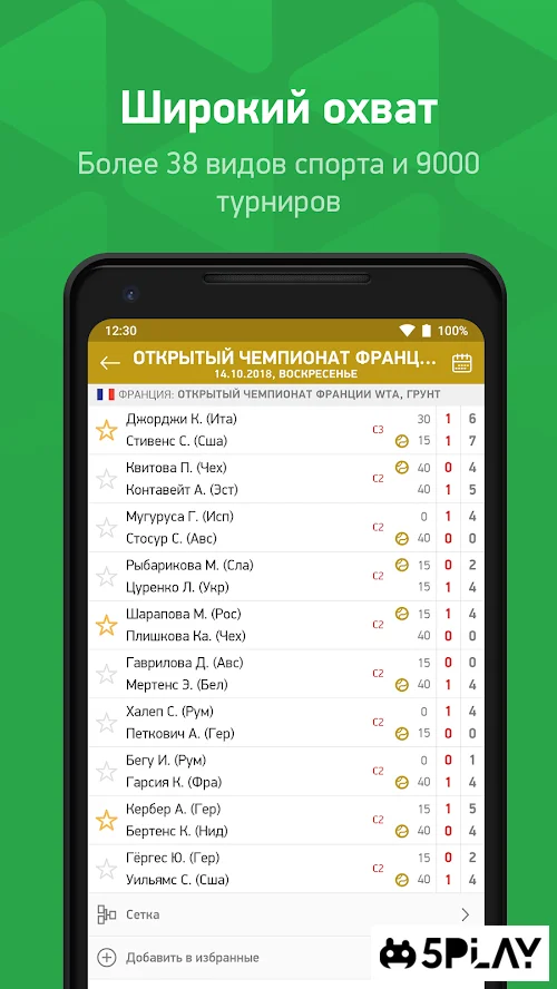 Чтобы не пропустить важные сообщения о забитых голах или выигранных вашим кумиром сетах, разработчик добавил push-уведомления и функцию "Мои игры". Каждый матч будет расписан в деталях, начиная от состава и заканчивая карточками, которые дали тому или иному игроку. Вы сможете оценить приятный, интуитивно понятный, интерфейс, с которым сможет разобраться даже маленький ребенок.