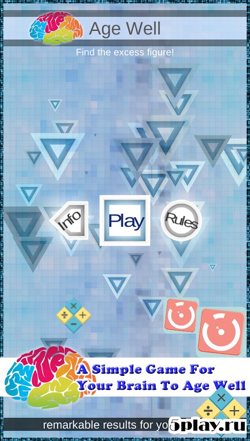 Age Well is a puzzle game that will definitely pump the brain and improve concentration, reflexes, concentration and intelligence. The project has a simple gameplay that can develop brain activity. Each level is represented by 4 figures, one of which is superfluous. It's the need to find the user. At first it may seem that the game is too simple, but as you progress through stages, the complexity will only increase, and interest rise. Simple but addictive gameplay and sleek design will appeal to lovers of quality arcade logic.