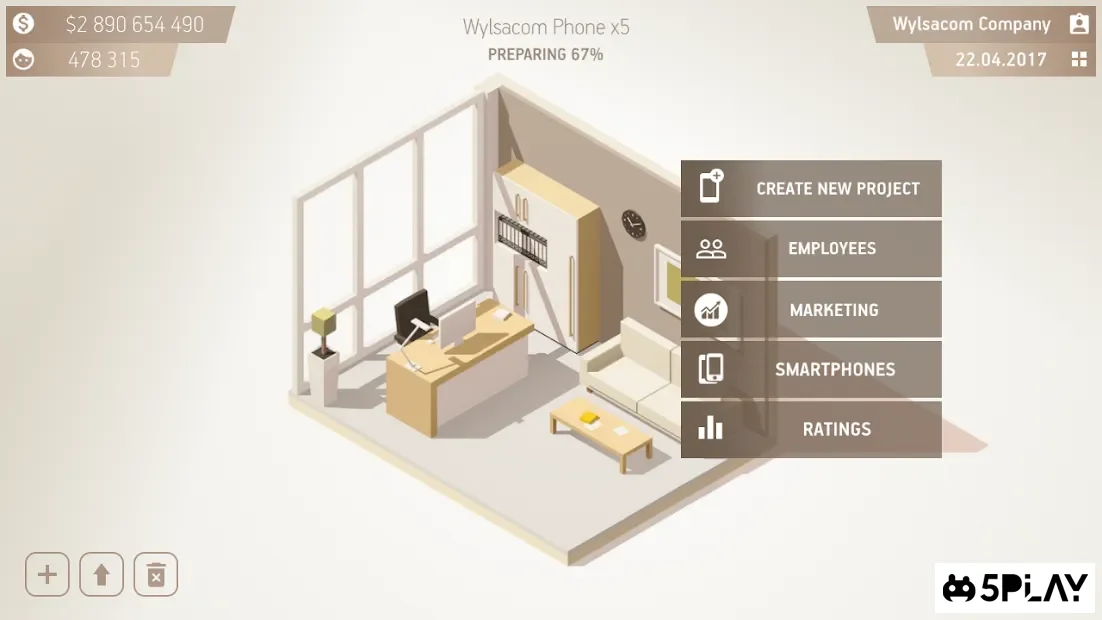 Smartphone Tycoon - economic Manager, in which the player will be at the head of the company engaged in the development and sale of smartphones. This project allows you to develop your own gadget and promote it on the market. Initially, the user will manage a small business, where he will create his first phone. To attract potential buyers, you need to find a competent combination of the functionality of the mobile device and its final cost. Gradually, in case of successful sales, it will be possible to implement more projects and expand the range of products of the company.