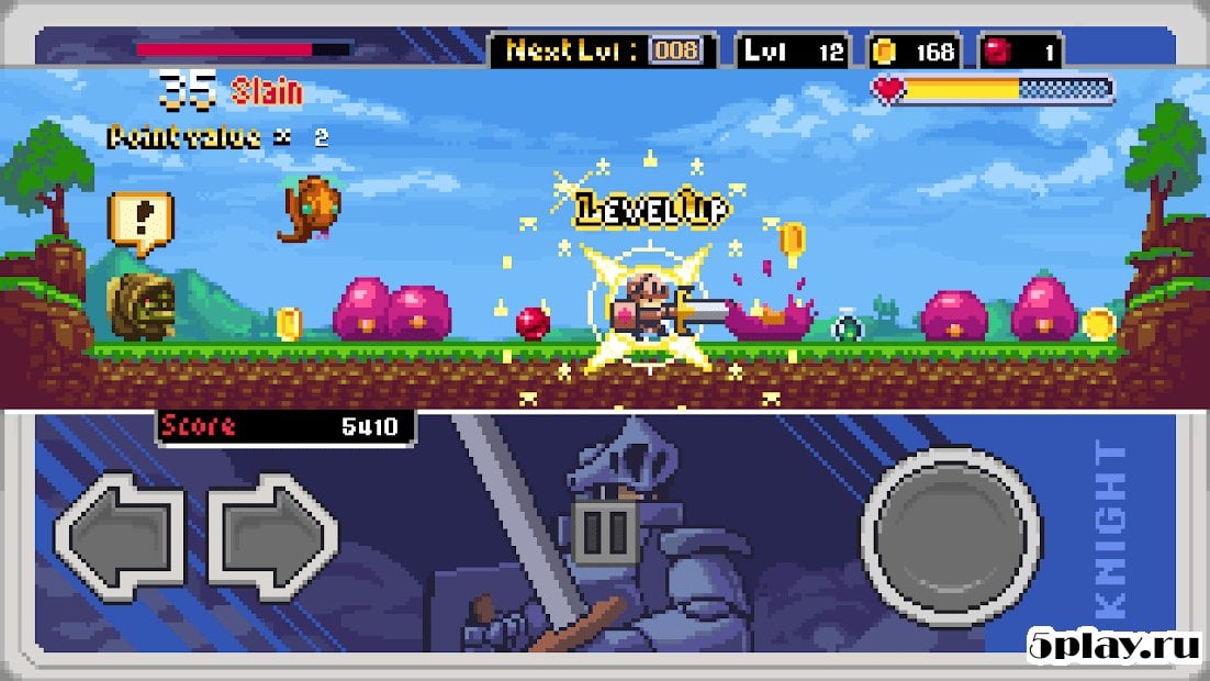 Slayin- adventure role-playing game with pixel graphics. According to the story the forces of evil began to appear suddenly out of the ground. The representatives of darkness look like small balls of mucus, but so many of them that they are able to cause irreparable harm to the Kingdom. To stop them, you will need to choose one of the characters and go into battle. In addition users are waiting for battle with the bosses, and defeating them will be especially valuable, because the only way to encourage other fighters to fight against evil.